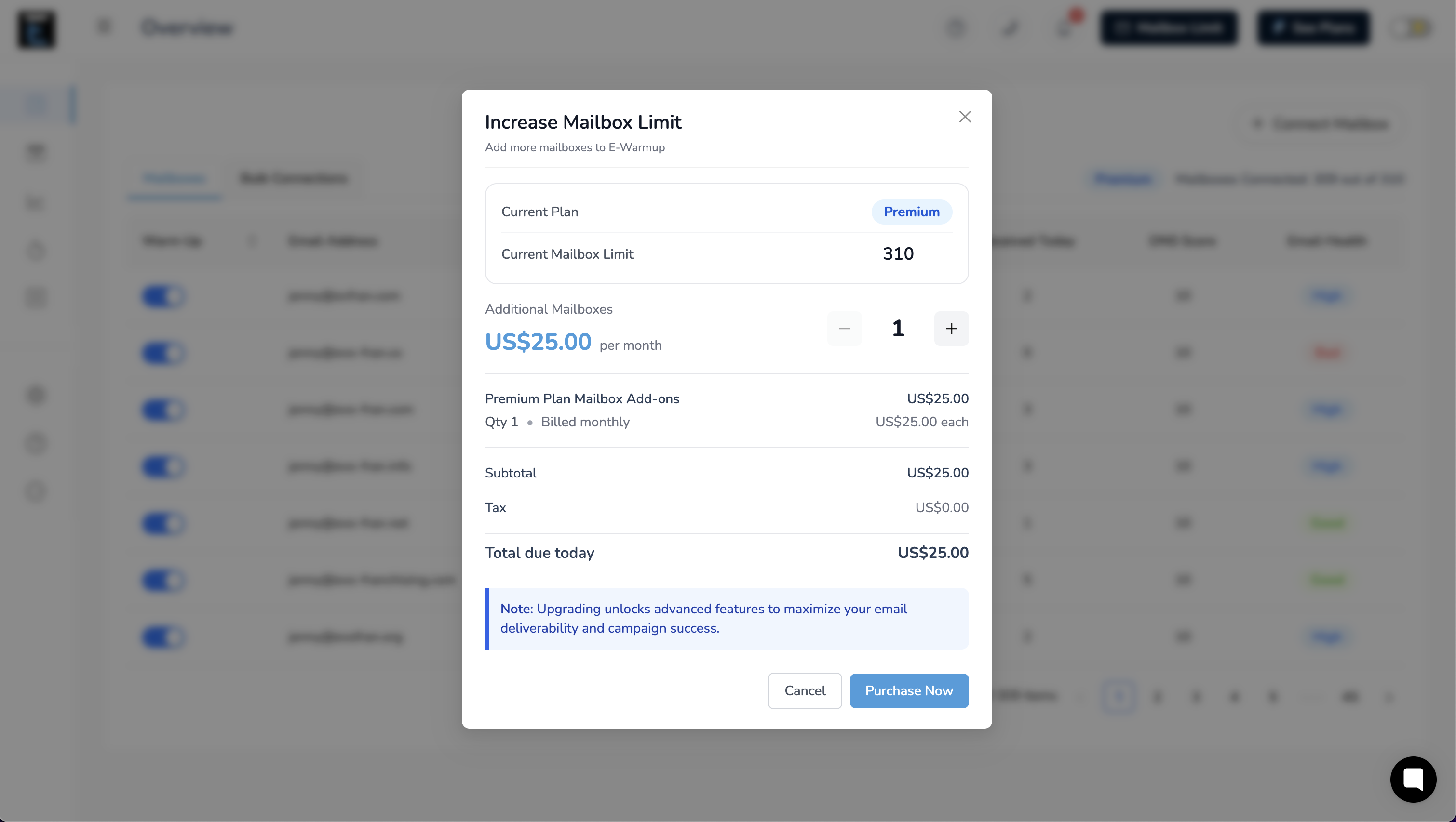 But what if you need to warm up even more mailboxes? That's where the Mailbox Limit Increase Add-on comes in.
